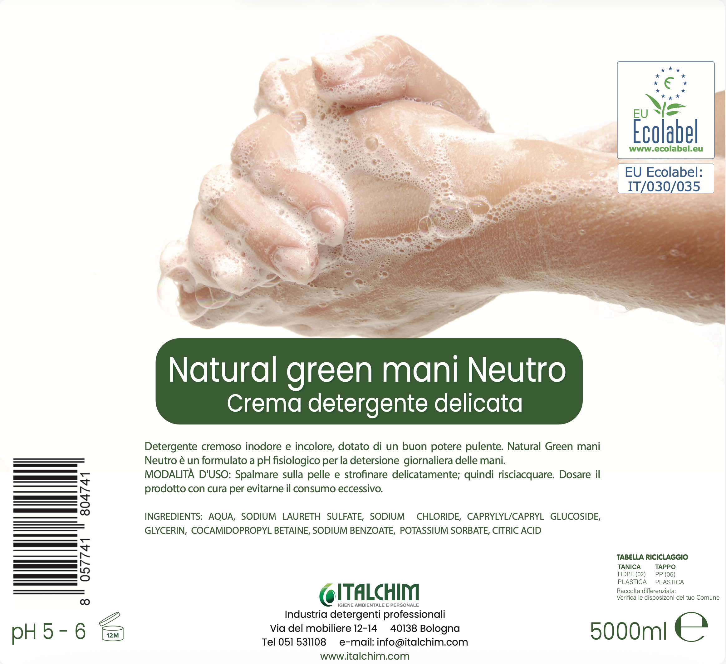 NATURAL GREEN CARE SAPONE MANI ECOLABEL NEUTRO DELICATO 5000ML